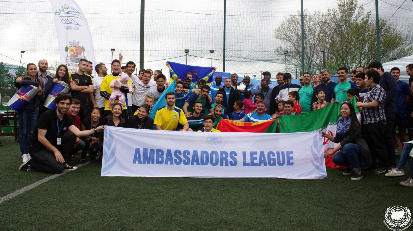 Благотворителният футболен турнир “Ambassadors’ League” се организира от ДООНБ с цел да срещне на терена представители на дипломатическите мисии и българските институции, както и неправителствени организации и да насърчи сътрудничеството помежду им по модела „дипломация със спорт“ в духа на Цел 3 и Цел 17 от Програма 2030 на ООН за устойчиво развитие. Средствата, набрани по време на състезанието, се използват за провеждане на обучения по права на човека за деца и младежи от страната.